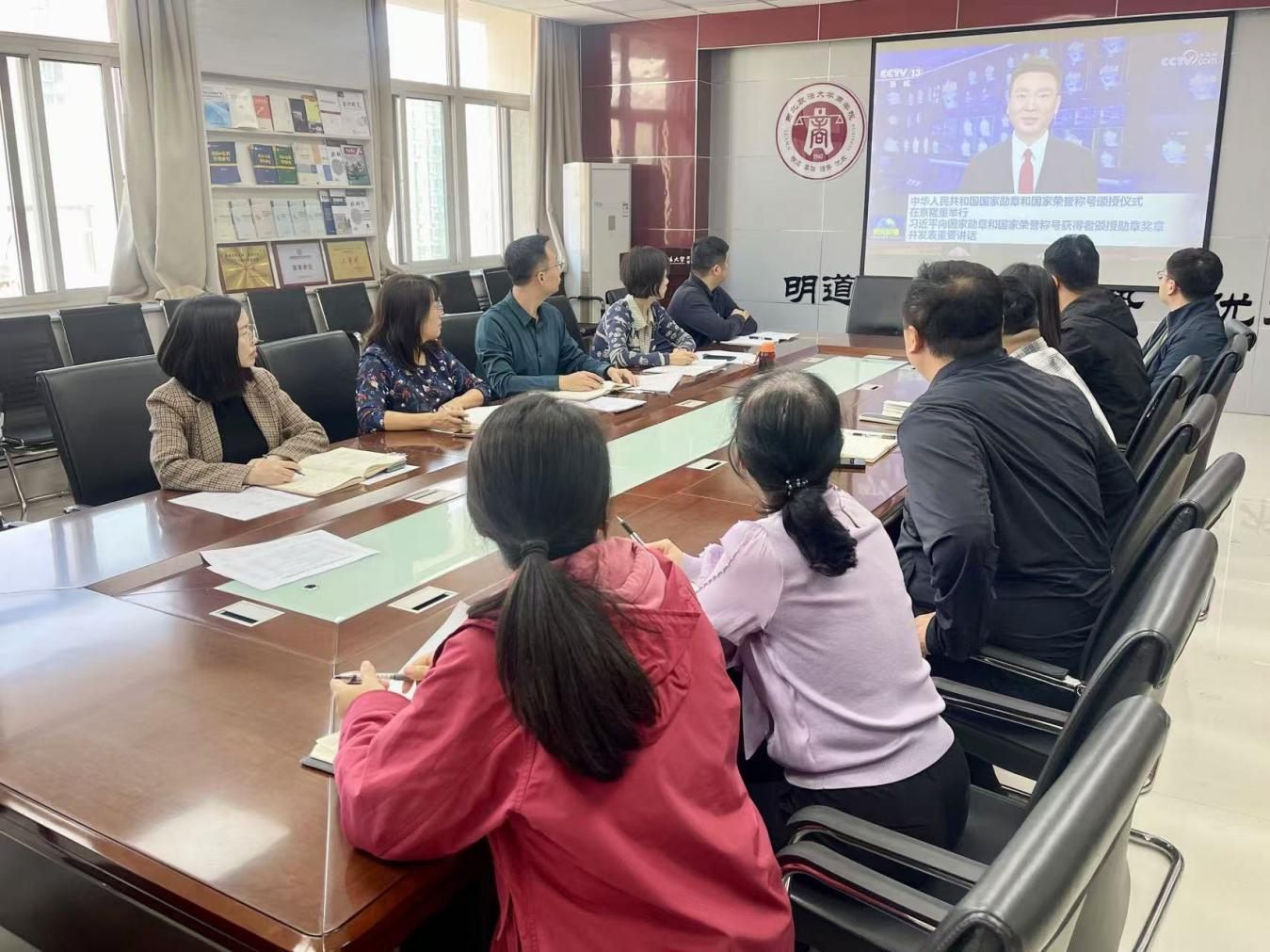 10月15日,太阳成tyc234cc党委理论学习中心组召开扩大会议,学习习近平总书记在中华人民共和国国家勋章和国家荣誉称号颁授仪式上的重要讲话精神,学习省委书记赵一德在全省市厅级主要领导干部学习贯彻党的二十届三中全会精神专题研讨班上的讲话,安排推进党纪学习教育常态化长效化。院领导班子成员、行政人员、学工干部参加会议,院党委书记赵参主持会议。