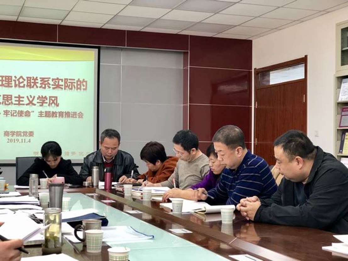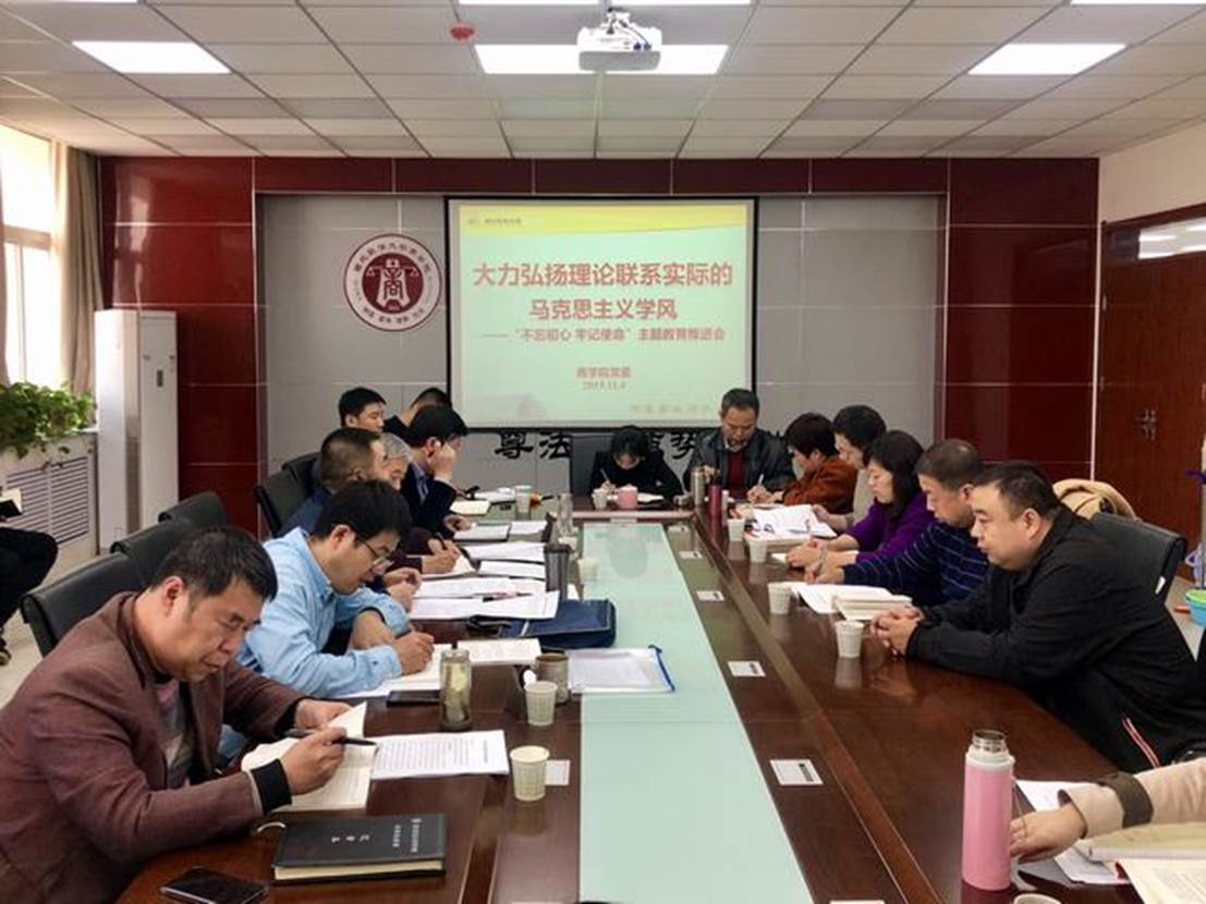 根据主题教育工作安排,11月4日,太阳成tyc234cc党委中心组及扩大成员在学院资料室召开“大力弘扬理论联系实际的马克思主义学风——不忘初心,牢记使命”主题教育推进会。校巡回指导组一组组长刘育龙、院领导班子成员、各党支部书记、各系部负责人、全体学工干部、行政人员及学生党员代表参加会议,会议由院党委书记路建潮主持。