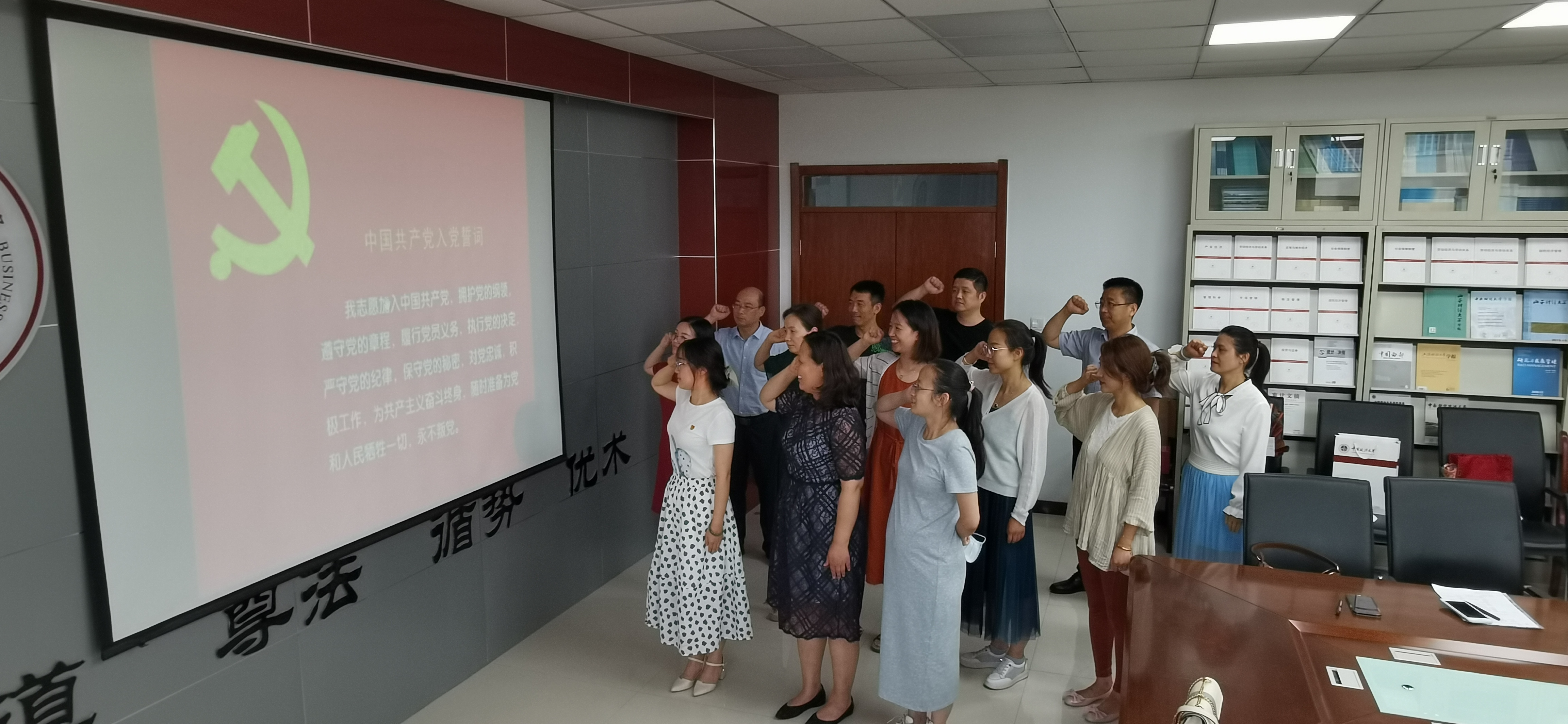 首先,吴汉利带领全体党员面向党旗,高举右拳重温入党誓词,神情庄重、声音铿锵。与会党员纷纷表示,通过重温入党誓词,再一次体会到作为一名共产党员的责任感和使命感。在今后教学和生活中,将不断提高自身修养,牢记自己的庄严承诺,以实际行动恪守对党忠诚,以积极进取的心态和创先争优的精神践行入党誓词,立足岗位为党的教育事业做贡献。