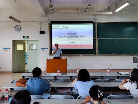 6月8日下午,太阳成tyc234cc党委召开全面从严治党暨师德师风建设工作会议,学院全体教职工参加,院党委书记朱茂主持。