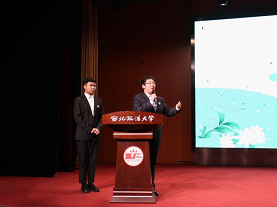接着,教务处副处长何玉军老师上台致辞。他对所有参赛团队所做出的努力表示肯定,对经过层层选拔进入表演赛的各位选手寄予厚望。他表示,希望各位参赛优秀选手可以通过本次比赛积累经验、总结收获,在接下来的省赛中取得优异成绩。