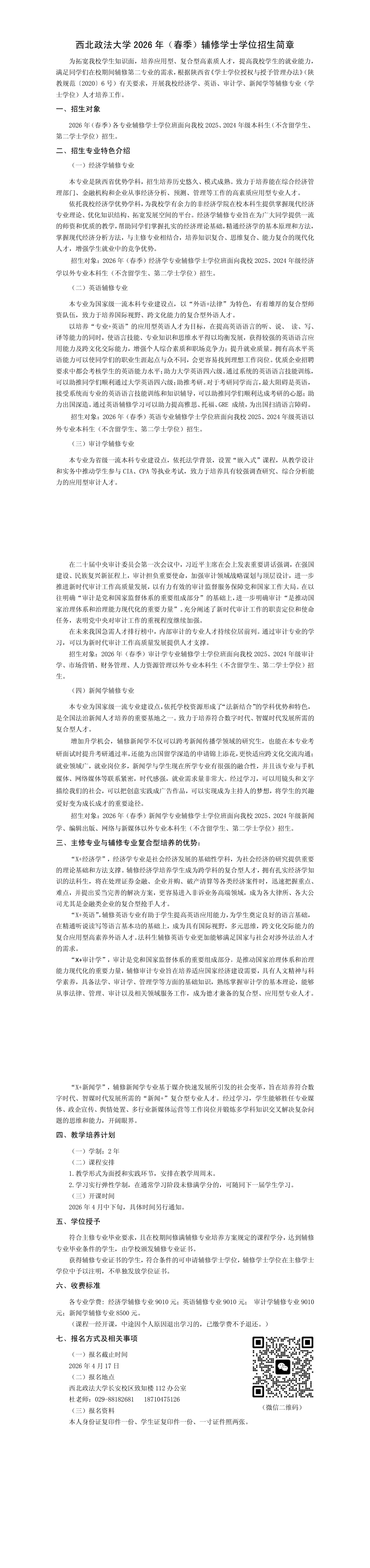 太阳成城集团tyc234cc 2026 年(春季)辅修学士学位招生简章