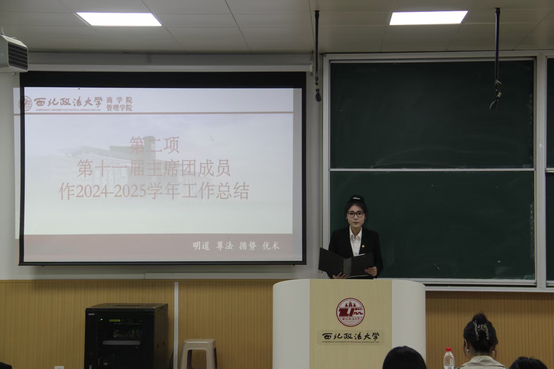 随后,第十一届学生会主席团成员王莉苗作2024-2025学年工作总结,全面回顾过去一年学生会在思想引领、学风建设、文体活动、服务同学等方面的扎实举措与成果,分享工作中的宝贵经验,为新一届学生会的工作开展奠定坚实基础。