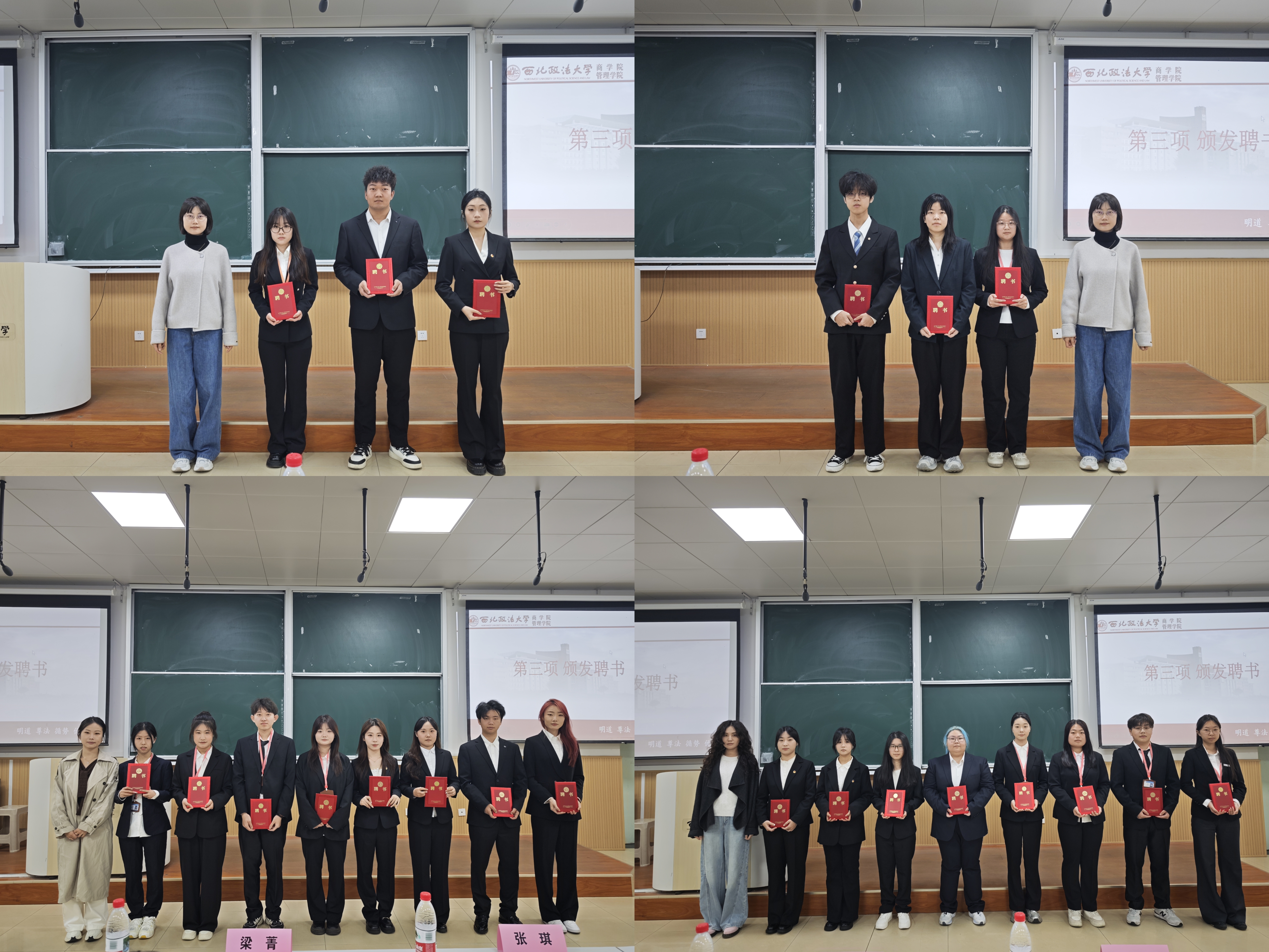 梁菁、张琪、熊珂三位老师分别为第十二届学生会主席团及各部门工作人员颁发聘书。