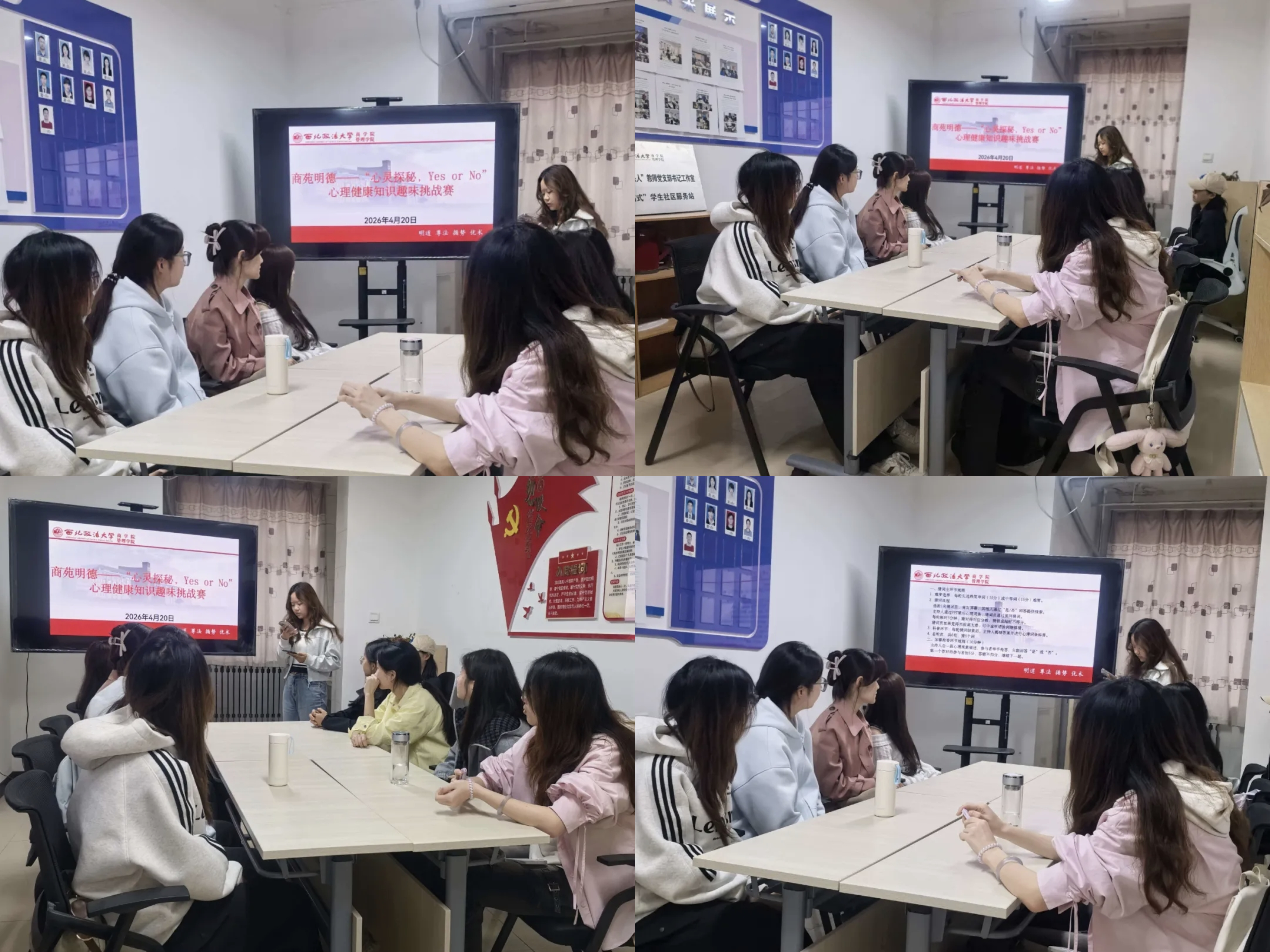 为进一步加强大学生心理健康教育,引导学生以积极心态应对学习生活挑战,4月20日,太阳成tyc234cc“商苑明德”系列活动之“心灵探秘,Yes or No”心理健康知识趣味挑战赛顺利举办。