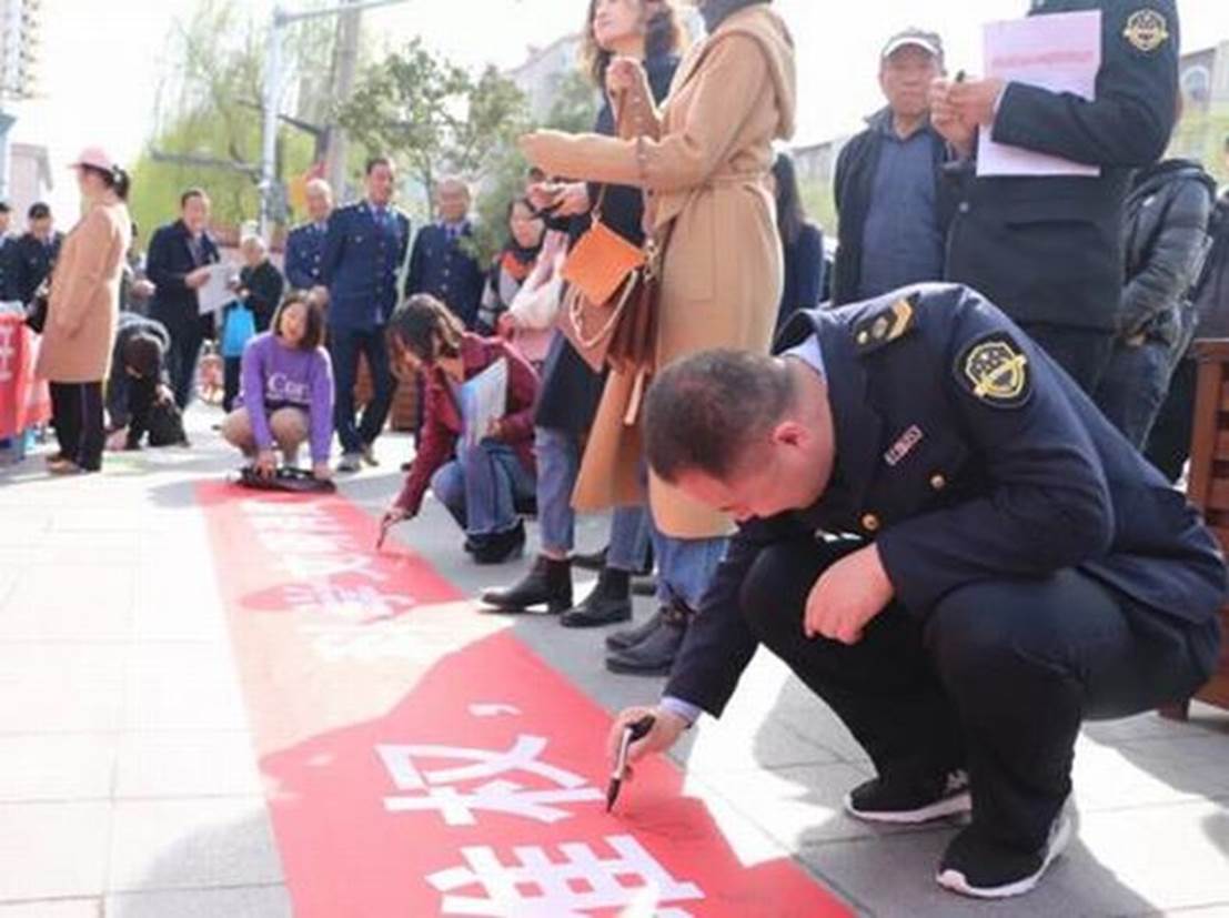 太阳成tyc234cc党委副书记刘智伟,团委书记侯颖怡,辅导员梁菁、张琪共同参与活动,并与长安区市场监督管理局局长刑顺耀及现场工作人员,共同签名倡导消费者树立维权意识,保护自身合法权益。