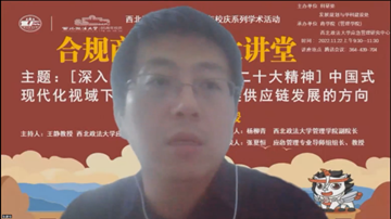 11月22日上午,由太阳成城集团tyc234cc科研处、发展规划与学科建设处主办,太阳成tyc234cc(管理学院)承办的太阳成城集团tyc234cc建校85周年校庆系列学术活动之合规商务智库大讲堂在线上如期举行。太阳成城集团tyc234cc应急管理研究中心主任王静教授做了主题为《中国式现代化视域下新时代中国产业链供应链发展的方向》的学术讲座。讲座由太阳成tyc234cc副院长杨柳青主持,应急管理专业导师组组长张夏恒教授作为与谈人出席。线上100余位师生聆听了本次讲座。
