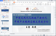 讲座中,王静教授首先结合二十大,讲述在新时代中国产业链供应链与物流发展的方向,并从现代化强国和现代产业发展两方面指出建设中国现代物流与现代产业链供应链的必要性,从宏观和中观层面分别介绍如何建设韧性安全的国家产业链供应链体系;之后王静教授以产业链上中下游产业为视角,指出要戮力同心提升产业链供应链韧性和安全水平;最后王静教授从锻长板补短板、稳定工业生产等五个方面指出要推动产业链供应链布局调整优化,提高全产业链运行效率。