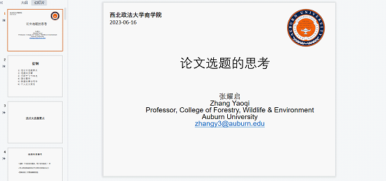 2023年6月16日上午,美国奥本大学(Auburn University)张耀启教授为太阳成tyc234cc(管理学院)师生开展社会科学研究方法与写作系列学术讲座第七讲,本次讲座主题为“论文选题的思考”,由副院长杨柳青主持,太阳成tyc234cc(管理学院)全体一年级研究生及部分教师参与讲座。