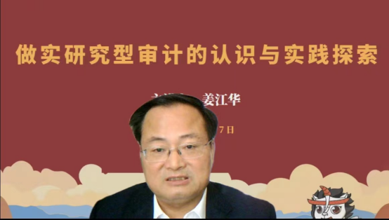 姜江华局长分别围绕为什么要做实研究型审计、什么是研究型审计、研究型审计研究什么和研究型审计怎么研究四个部分进行阐述。第一部分,讲述了部分审计机关和内审人员对做实研究型审计的困惑和挑战及当前审计机关和内审机构的审计质量和作用发挥还有很多不足,并介绍了相关的案例。接下来,从研究型审计的内涵、需要辨清的几个问题和研究型审计的主要特征这三个方面进行介绍。之后,阐述了研究内容,告诉我们要把研究型审计作为审计理念和习惯贯穿审计全过程,用典型案例提出检验研究型审计是否做实的标准。第四部分,介绍了审计署相关政策措施、审计机关和内审机构一些好的做法等内容。最后,告诉我们要努力通过做实研究型审计,实现思路提升、业务提升、成果提升、队伍提升。