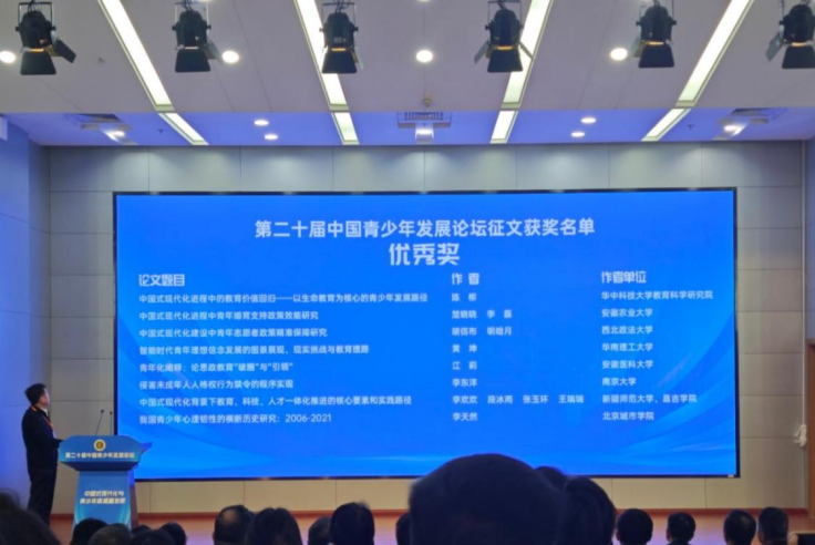 2025年3月31日,以“中国式现代化与青少年高质量发展”为主题的第二十届中国青少年发展论坛在南京师范大学举办。共青团中央书记处第一书记阿东出席并讲话,江苏省委常委、省委秘书长储永宏出席并致辞,共青团中央书记处书记胡百精主持主论坛,南京师范大学党委书记王成斌致辞。共青团中央、教育部、江苏省有关部门负责同志,来自全国各地的青少年研究工作者、论坛征文获奖代表和青少年研究机构负责人等参加论坛。我院行政管理研究生明晗月受邀参会,并以论文“中国式现代化建设中青年志愿者政策精准保障研究”参加了“中国式现代化建设中的青年政策和法治保障”分论坛,与业内同行进行了充分交流。