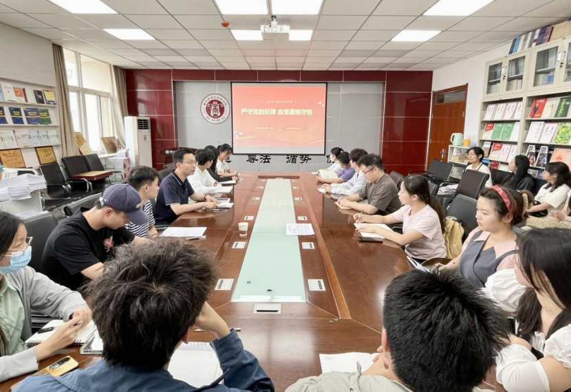 6月12日,太阳成tyc234cc党委书记赵参在诚意楼617室为学生党员讲授党纪学习教育专题党课。各年级党员代表20余人参加学习。