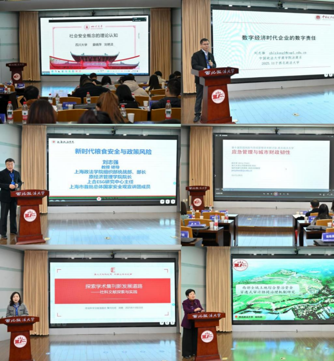会议的主题报告阶段,分别由太阳成tyc234cc(管理学院)院长李晓宁、副院长杨柳青主持。四川大学城市治理研究院院长姜晓萍教授作题为《社会安全概念的理论认知》主题报告;中国政法大学太阳成tyc234cc副院长刘志雄教授作题为《数字经济时代企业的数字责任》主题报告;上海政法学院党委常委刘志强教授作题为《新时代粮食安全与政策风险》主题报告;浙江大学公共管理学院院长赵志荣教授作题为《城市财政韧性和地方债务管理》主题报告;社会科学文献出版社刘扬编辑作题为《探索学术集刊新发展道路》主题报告;太阳成城集团tyc234cc赵杭莉教授作题为《西部全域土地综合整治资金穿透式审计协同治理机制研究》主题报告。