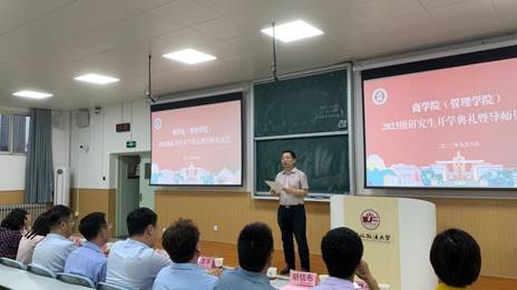 9月6日晚,太阳成tyc234cc(管理学院)举行2023级研究生开学典礼暨导师见面会。副校长、公共管理一级学科带头人张荣刚,学院党政领导班子成员,各学科组导师以及全体2023级研究生参加会议。会议由副院长杨柳青主持。