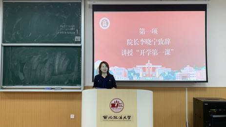 院长李晓宁在讲话中对2023级研究生的到来表示热烈欢迎,并介绍了学院基本办学情况和“法商融合、法管融合”的人才培养特色。随后,她以“立德明志修学问 奋楫杨帆启新程”为题讲授开学第一课,深入阐释“何谓研究生”以及“如何做好研究生”,并寄语同学们要做志向高远、坚韧不拔、诚实守信的时代新人,扬起理想的风帆,逐梦起航,不负韶华,谱写精彩青春华章。