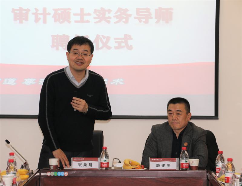 随后,陕西地电股权投资有限公司总经理郭海星代表实务导师发言。他首先对我院首届审计硕士顺利招生表示祝贺,认为审计是一个实操性很强的专业,只有理论与实践相结合,才能培养出素质过硬、职业道德高尚的应用型审计专业人才。