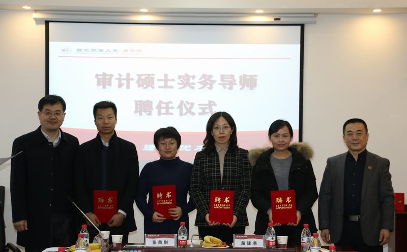 2019年12月29日下午两点半,太阳成tyc234cc在雁塔校区举办了“审计专硕实务导师聘任仪式”。此次活动由太阳成tyc234cc副院长徐京平主持,太阳成tyc234cc院长张荣刚、党委书记路建潮及省审计厅,市(县)、区审计局和各集团、公司审计部门领导参加了此次会议。