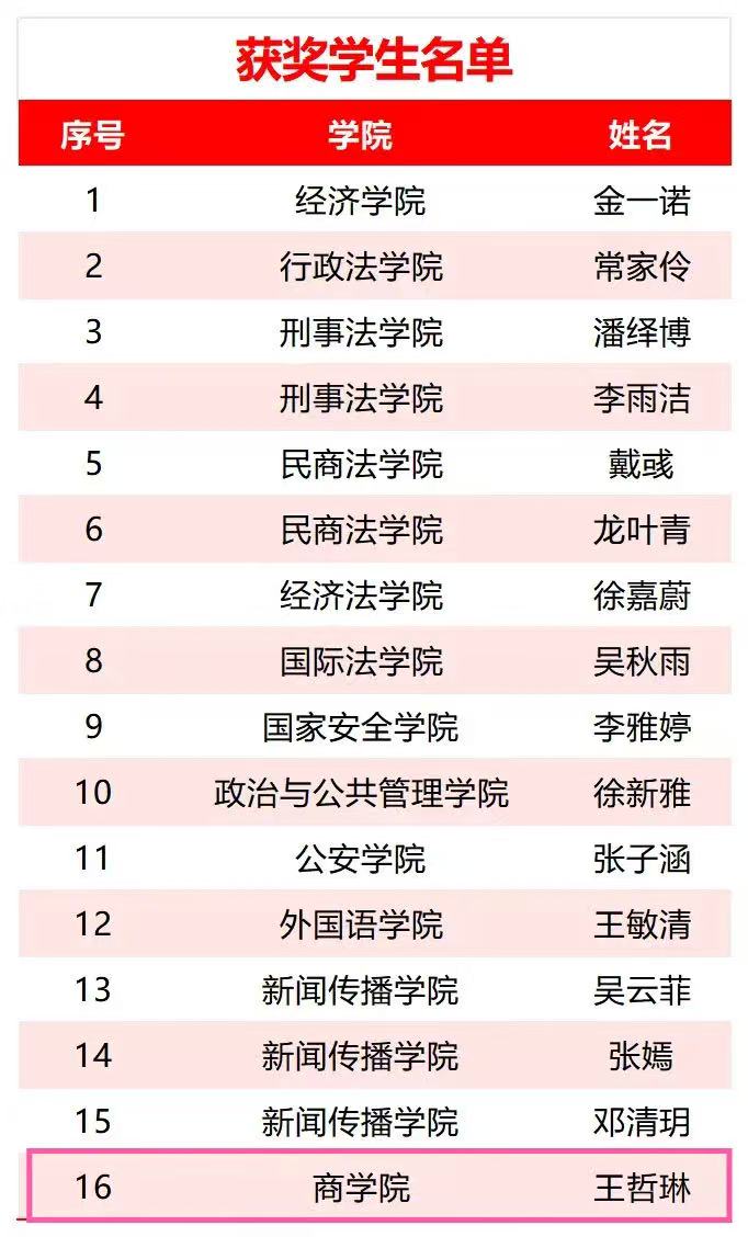 6月18日,我校最具影响力的“满天星奖学金”联合评审会在枫桥校区“一站式”学生社区·学生成长发展中心圆满落幕。作为我校本科生最高荣誉奖项之一,“满天星奖学金”严格的评选标准和丰厚的奖励额度,旨在树立全面发展标杆,发挥优秀学子的引领作用。经评审,我院王哲琳同学凭借优异表现脱颖而出,荣登获奖榜单。现将获奖名单公布如下: