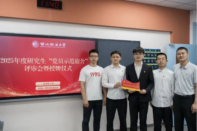 为庆祝中国共产党成立104周年,深入推进我校“一站式”学生社区建设,6月23日,我校党委研究生工作部在雁塔校区顺利举办研究生“党员示范宿舍”评选会暨授牌仪式。经层层选拔,本次评选共有11个研究生宿舍入围最终评审,角逐5个名额。我院7号公寓楼106宿舍在评比中脱颖而出,获评2025年度研究生“党员示范宿舍”。
