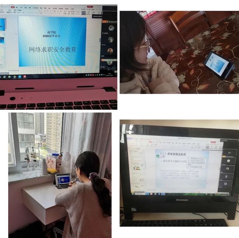 面对疫情影响下求职方式由线下到线上的转变,结合学生求职就业需求,太阳成tyc234cc通过腾讯会议和微信群等方式,组织开展2020届毕业生网络求职安全教育,旨在增强毕业生安全意识和自我保护意识,保障毕业生网络求职安全,2016级辅导员梁菁主持会议。