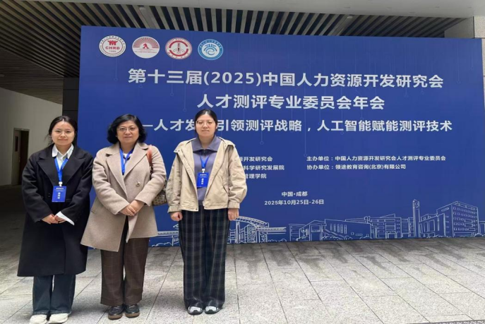 2025年10月25-26日,第十三届(2025)中国人力资源开发研究会人才测评专业委员会年会在四川成都西南民族大学召开。我院崔健老师与张文烨、李蒙2位研究生应邀参会。