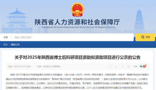 近日,陕西省人社厅网站公示2025年陕西省博士后科研项目拟资助项目,488个博士后项目公示入选。我院张涛涛、李章星两名教师获2025年陕西省博士后项目三等资助。