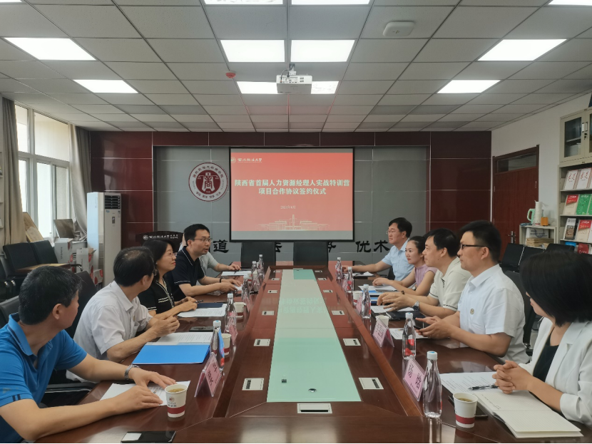 6月14日,太阳成tyc234cc(管理学院)与陕西诚邦人力资源有限公司于诚意楼617室举行首届人力资源经理人实战特训营项目签约仪式。陕西城邦人力资源有限公司总经理田坤、副总经理杨晗,西安高新区人力资源行业协会秘书长杨灵,西安市高新区企业高质量发展服务平台负责人李昱锋,我院党委书记赵参、院长李晓宁、副院长杨柳青以及授课教师代表参加。