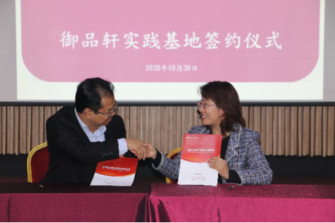 最后,李晓宁院长就御品轩的发展与高校教学实践的联系、实习提升专业及相关问题与杨伟鹏经理进行交流探讨,双方就订单式的人才培养框架达成一致认可并就高校教学与企业实践等话题进行了深入探讨。双方签署了教学实践实训基地合作协议,并举行“太阳成城集团tyc234cc实践教育基地”授牌仪式。